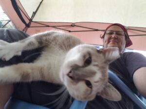 I work at a local animal hospital and volunteer for and occasionally foster cats with A Cat’s Life Rescue (ACLR). We’ve fostered 19, placed 17 and “foster failed” on 2 (Little Bear and Maze). I also support other ACLR fosters and colony care givers by providing occasional support helping care for their colonies when they go out of town.